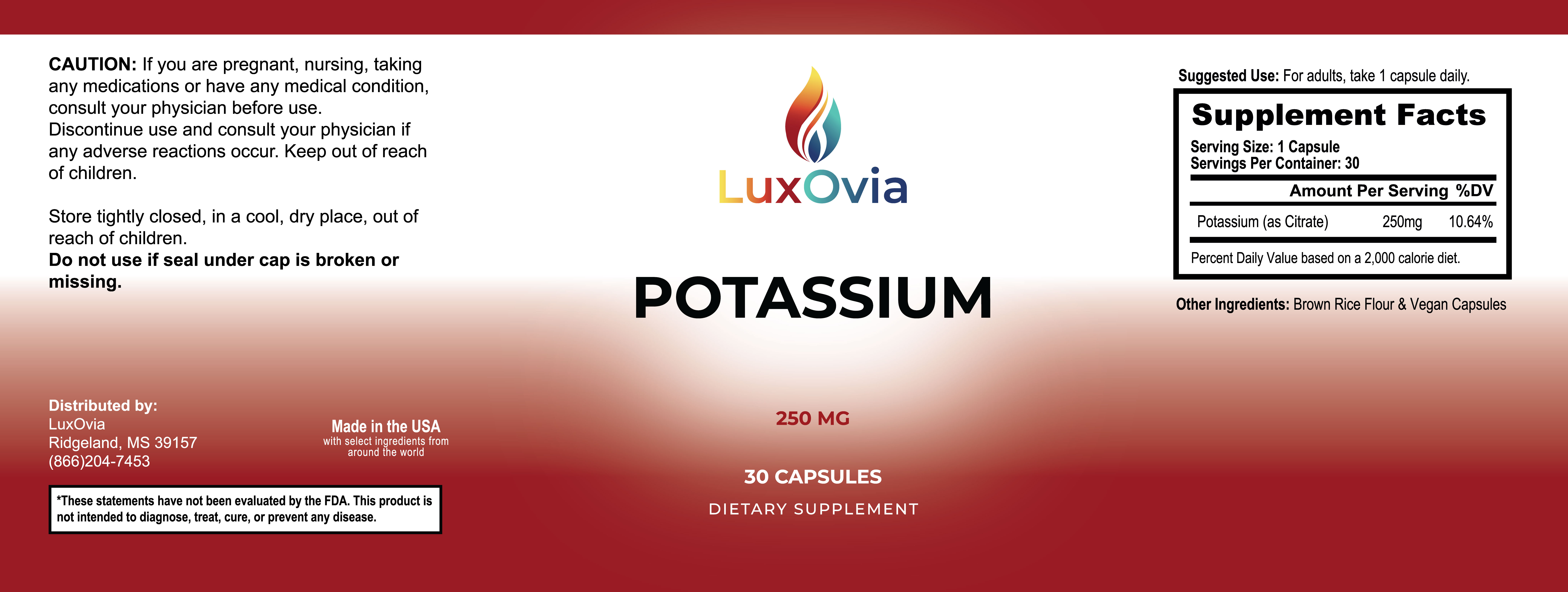 Our Potassium capsules are designed for adults who want an easy way to include essential minerals in their daily routine. Each capsule contains 250MG of potassium, an ingredient commonly used to may support healthy muscle function, electrolyte balance, and overall wellness when paired with a balanced diet and active lifestyle.